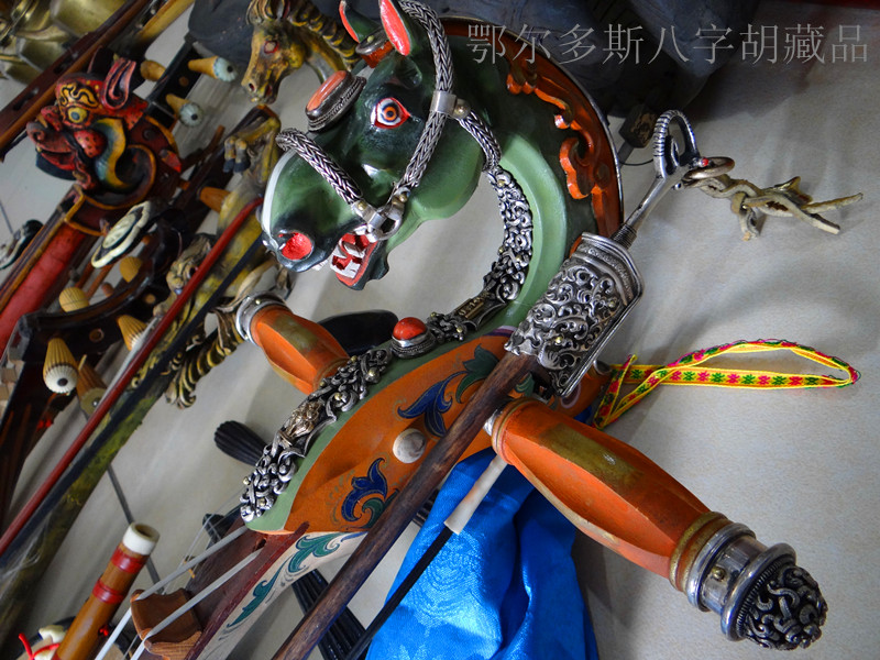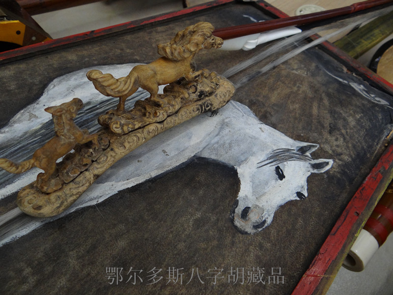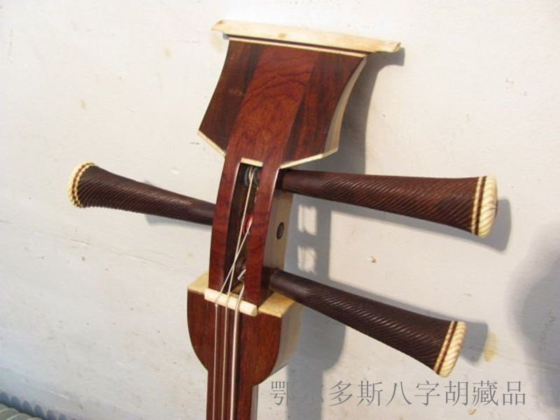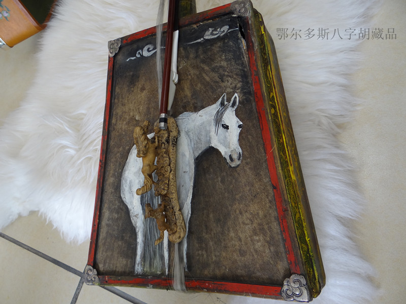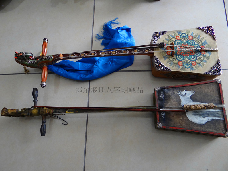 蒙古人最具特色的传统乐器。又名“胡兀儿”、“胡琴”、“马尾胡琴”、“莫林胡兀儿”等。为擦弦类弦鸣乐器。因琴杆上端雕有马头为饰而得名。它由共鸣箱、琴杆、琴头、弦轴、马子、琴弦和拉弓等部分组成。共鸣箱多为梯形,也有方形、长方形、六角形、八角形的。箱框板用硬质木板制作,两面蒙以马皮或牛皮、羊皮,也有正面蒙皮、背面蒙以薄板的。琴杆用色木、梨木或红木等制作,上部左右各有一个弦轴,顶端为琴头。拉弓多用藤条或木杆与马尾作成,两条琴弦分别用40根(里弦)和60根(外弦)左右马尾合成,两端用丝弦结住,系于琴上。马头琴的演奏方法与其它拉弦乐器不同,它的弓不是夹在琴的里外弦之间,而是在两弦外面擦弦拉奏的。多用作独奏或自拉自唱。其发音柔和、浑厚而低沉,音色悠扬、醇美,富有草原风味,因而有人形容说:“对于草原的描述,一首马头琴的旋律,远比画家的色彩和诗人的语言更加传神”。