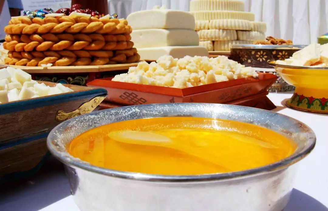 锡林郭勒蒙餐第一绝,蒙古早茶,其绝在于草原文脉的传承和马背民族饮食精华的集萃。蒙古人一日餐食的重点在于早茶。人们要在早茶上摄取足够的能量去完成一日的劳作。崭新的一天被热腾腾的奶茶唤起,早茶早已超越了食物本身,承载着一种文化、一种情感、一种仪式。