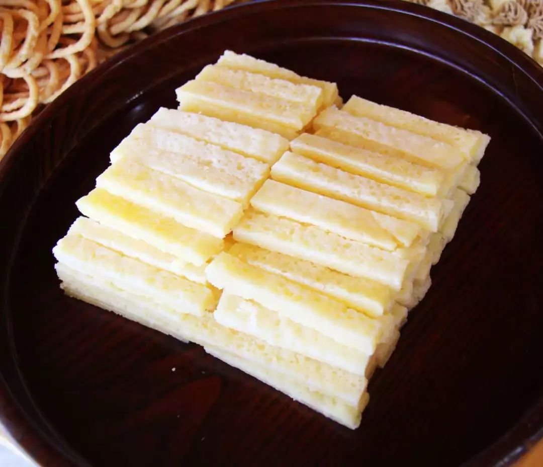 锡林郭勒蒙餐第八绝:黄油卷子,其绝在于农耕和游牧饮食文化的完美结合。黄油卷子是锡林郭勒草原游牧民族的经典食品,也是日常食用的面食之一。黄油卷子的吃法多样,可以配羊肉蒸汤,夏季也可配嚼口汤,放到奶茶里食用也可以。