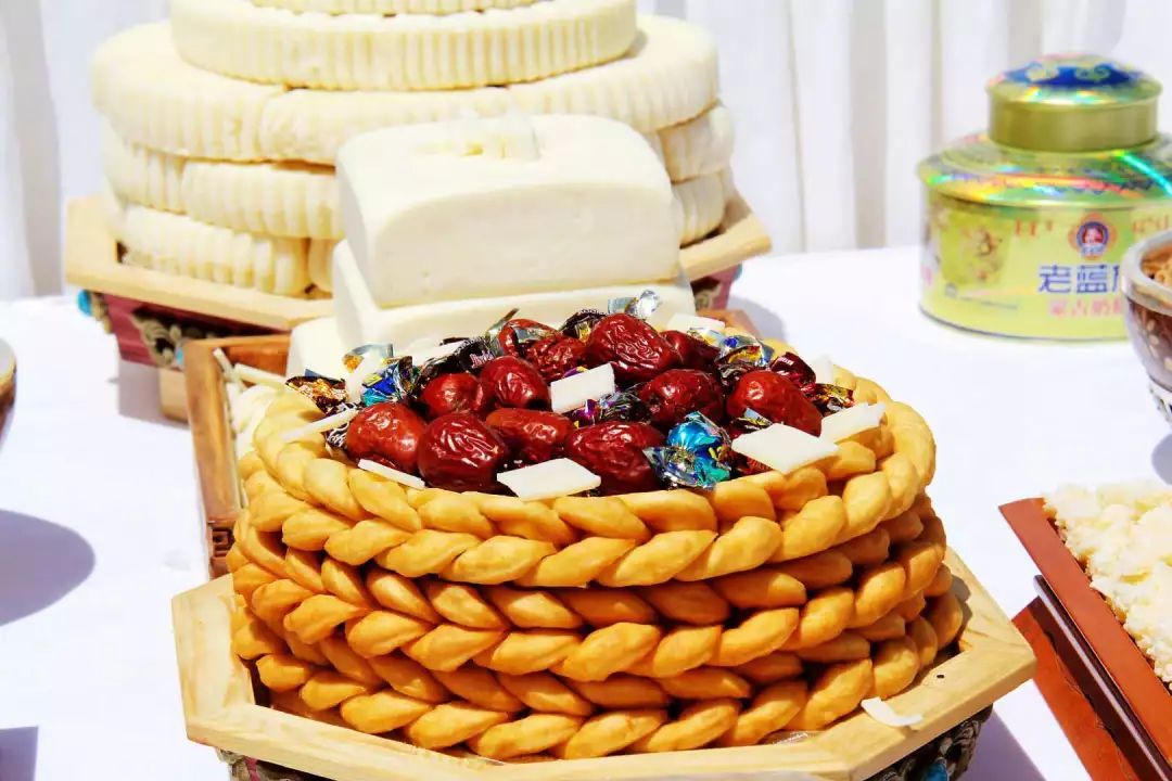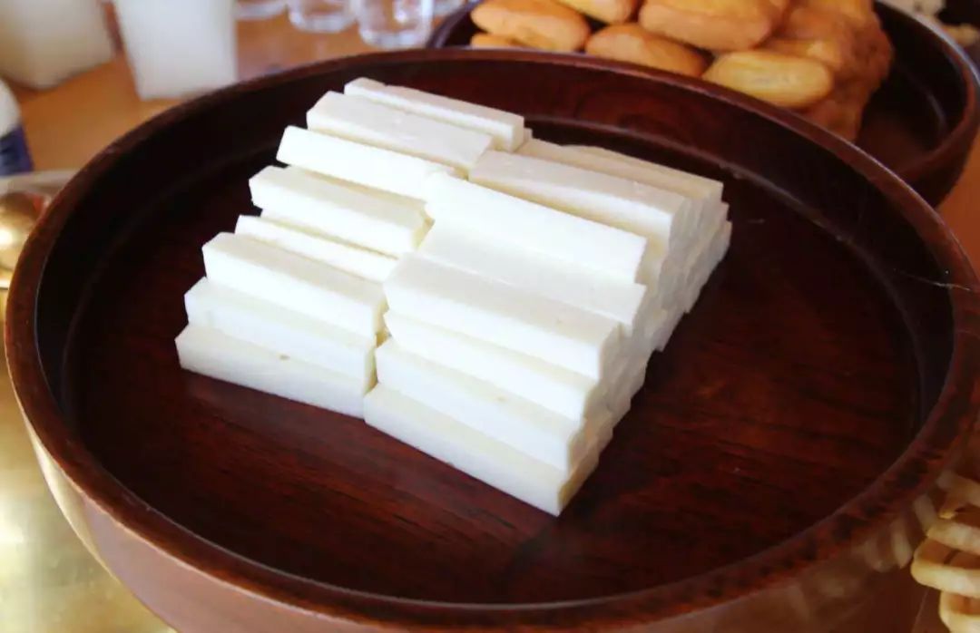 锡林郭勒蒙餐第二绝,蒙古奶食,其绝在于独有的制作工艺和形制上的审美传承。蒙古族在世代养牧过程中掌握和创制了利用牲畜奶汁制作多种奶食品的方法。四方形的奶豆腐是锡林郭勒独有的工艺。制作奶豆腐的各类模具也是蒙古族妇女盛大节日摆盘的基本工具。早在清朝时正蓝旗就是皇宫白食的供应基地。2013年12月“正蓝旗奶豆腐”和“正蓝旗奶皮子”获国家地理标志保护;2014年8月正蓝旗查干伊德制作工艺被列入国家非物质文化遗产名录。