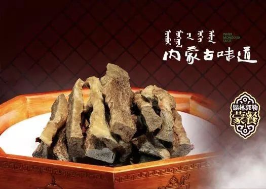 锡林郭勒蒙餐第七绝,风干肉,其绝在于以红柳为器在怡然的季节里自然风干。风干肉是蒙古族传统的储肉方法。风干后的肉易携带、储存,被誉为“成吉思汗的行军粮”。入冬后,牧民们就会将牛肉、羊肉或者牛排、羊排制作成风干肉。锡林郭勒浑善达克沙地有很多红柳,牧民用柳条编制成“布和格”,将肉放在里面自然通风风干,这样风干的肉层次丰富,特别好吃。