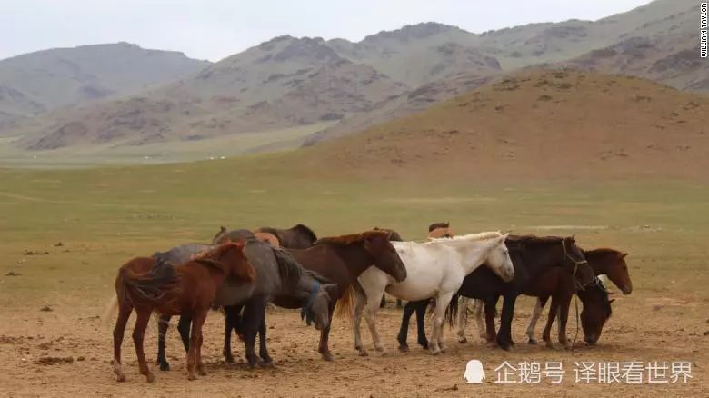 之前的理论认为兽医护理来源于西方,之后在地中海区域或中华文明中得以发展,而并非是发源于几世纪前的游牧民族。图为巴彦洪戈尔省的杭爱山山脉的鹿石遗址附近的马群。