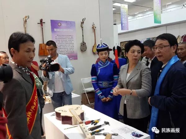 ❖在内蒙古“非遗”会展上火不思制作技艺人照德布制作的乐器吸引了众人的关注
